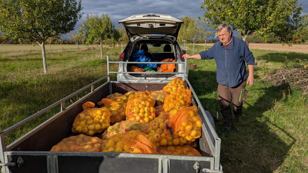 Nach der letzten Ernte im Bensbruch und am Woog in Hainstadt haben wir jetzt nochmal ca. 300 kg Äpfel geerntet. Ende der Woche wollen wir pressen lassen. Im Bensbruch war der große Baum fremd geerntet, auf der alten Mülldeponie waren alle Bäume fremd geerntet. Nur am Woog war in diesem Jahr nicht fremd geerntet worden.