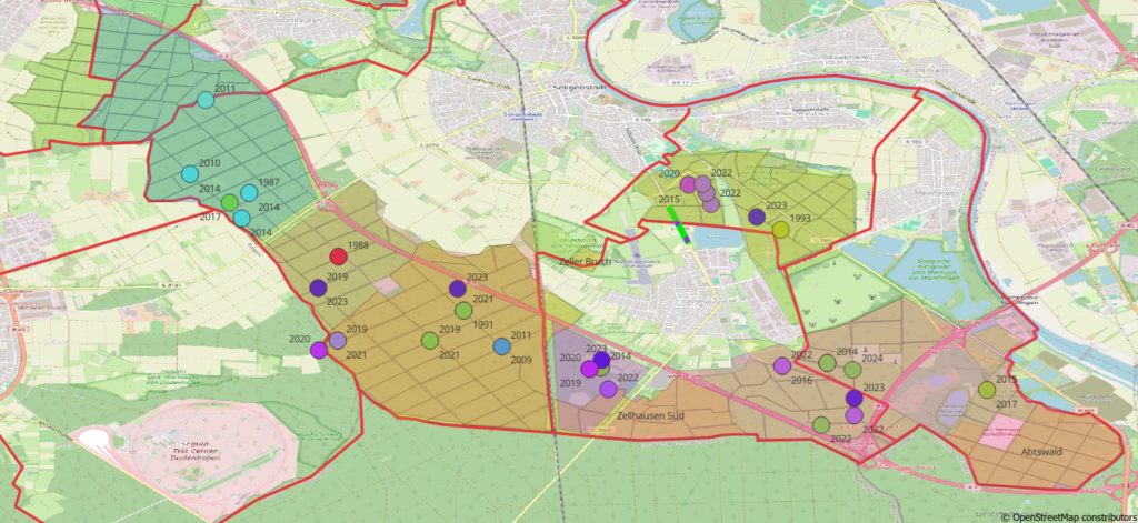 Nachweise des Braunen Langohrs 1985 bis 2025 in Seligenstadt und Mainhausen (Letztnachweise)