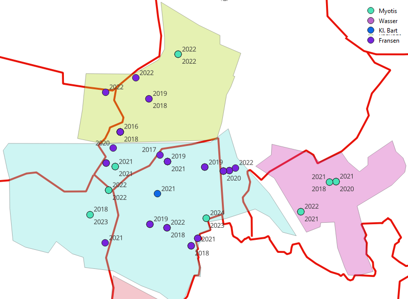 Vorgefundene Fledermäuse 2016 bis 2024 nach Arten